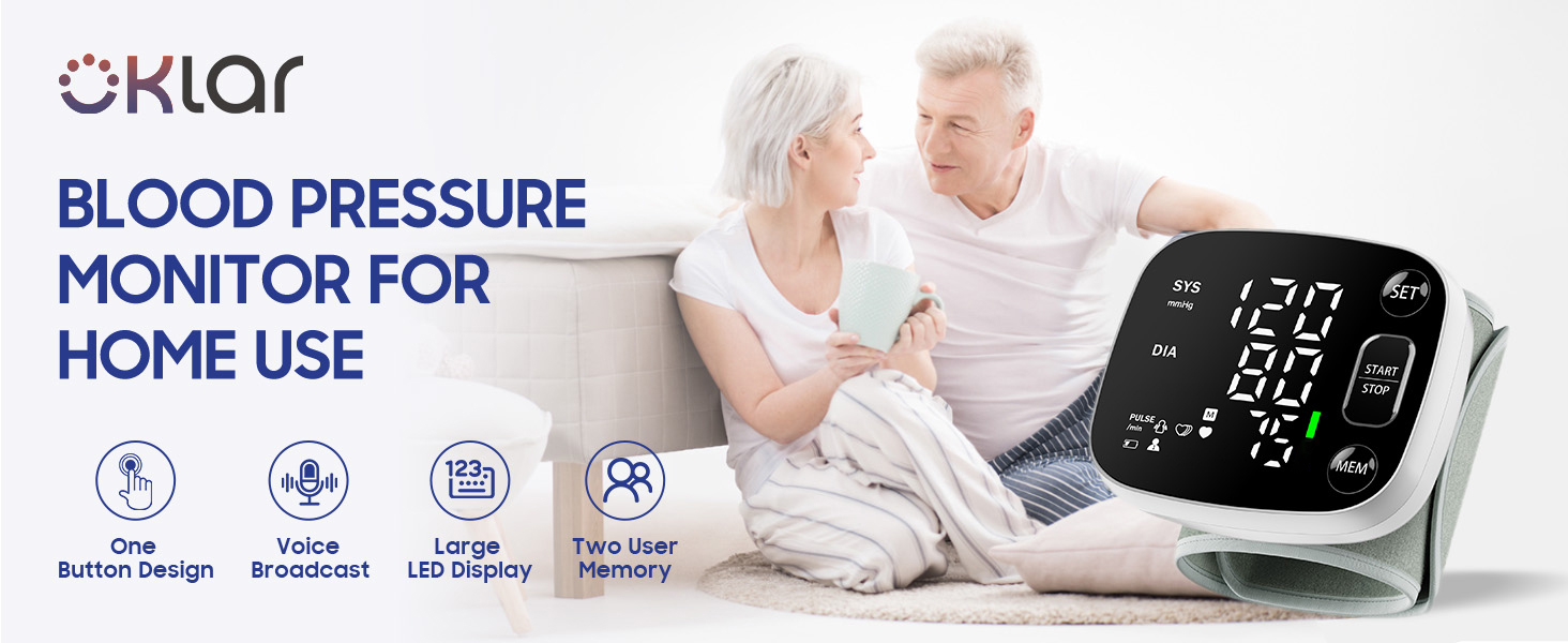 Oklar Blood Pressure Monitors for Home Use Rechargeable Wrist Digital BP Machine Cuff with LED Backlit Display, Voice Broadcast, 240 Memory Storage for 2 Users with Carrying Case