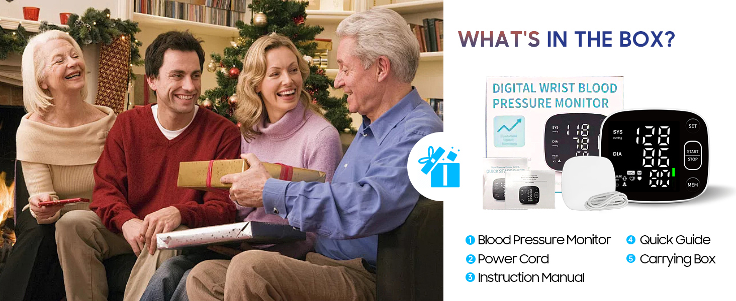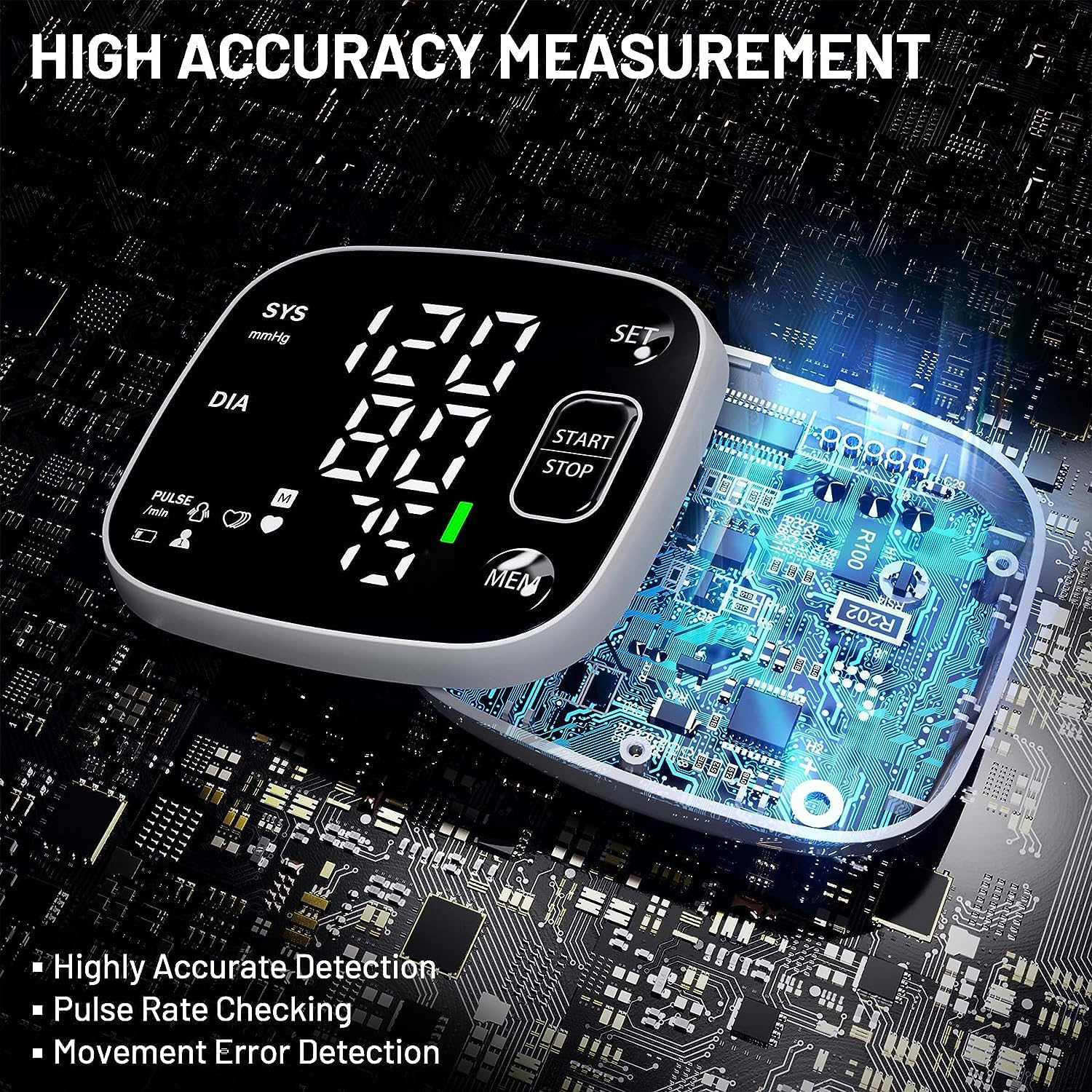 About this itemConvenient Dual User Mode: Store up to 240 readings for two users, allowing easy tracking and comparison of measurements Fast and Accurate Measurements: Our fully automatic wrist blood pressure machine provides fast and precise results, simply press the "START/STOP" button, and the measurement process takes 35 seconds; the device automatically turns off after 60 seconds of inactivity Voice Broadcast Design: Our automatic blood pressure cuff features a voice broadcast function, making it ideal for individuals with poor eyesight; you can adjust the volume or turn off the sound using the SET and MEM buttons Large LED Backlit Display: The large LED screen of our blood pressure monitor features clear numbers, ensuring easy readability even in low-light conditions, enjoy a hassle-free visual experience Portable Rechargeable Blood Pressure Monitor: Equipped with a built-in rechargeable battery and Type-C cable for convenient charging anytime, eliminating the need for battery replacements and ensuring you can easily monitor your health (Note: Charging adapter not included in the packaging) Adjustable Wrist Cuff: With an adjustable cuff ranging from 4.92 to 8.46 inches, it provides a more comfortable fit and ensures accurate measurements